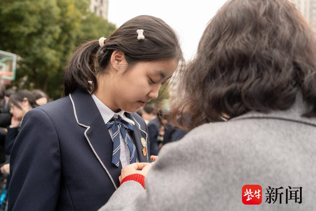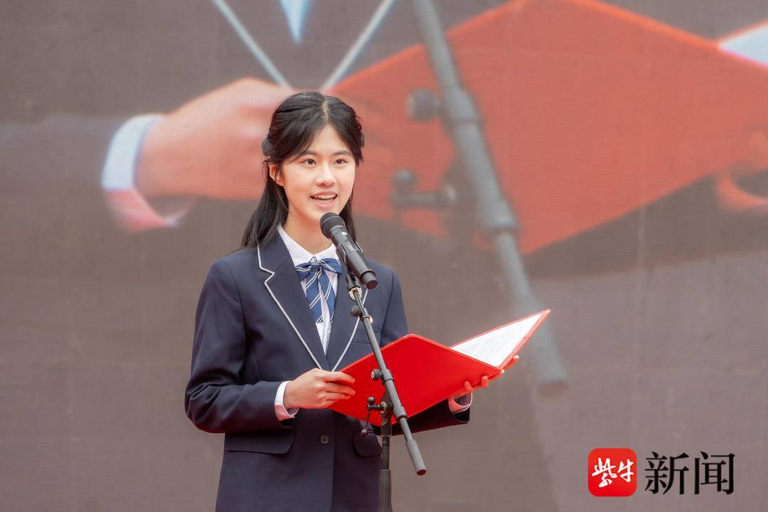 校领导逐一为各班学生代表颁发《中华人民共和国宪法》,陈立其校长为学生代表佩戴成人徽章。随后,在党委书记居艳的带领下,全体高三学子举起右拳,以昂扬的斗志和坚定的信念庄严宣誓,铿锵有力的誓言响彻校园。