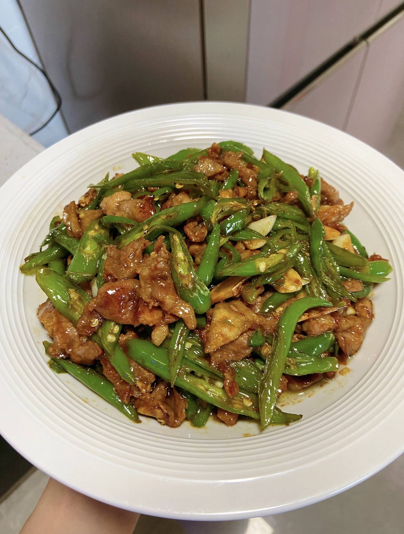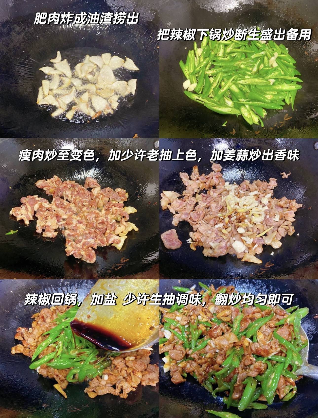 锅中的热度丝毫未减,切好的辣椒段便顺势滑入。大火爆炒,让辣椒在高温下迅速“断生”,这个过程能逼出辣椒的水汽,使其表皮微微起皱,散发出独特的焦香和辣香,但又不至于完全炒软,保留其爽脆的口感。炒好的辣椒同样盛出,为接下来的主角腾出空间。锅洗净或直接利用底油,将腌制过的瘦肉片滑入锅中。瘦肉片通常用少许生抽、料酒和淀粉抓匀,这能让肉质在快速滑炒中保持鲜嫩。待肉片变色,沿着锅边淋入少许老抽,瞬间,酱香与焦糖色便均匀地包裹在每一片肉上。紧接着,投入姜丝和蒜末,与肉片一同爆炒,让辛香料的香气彻底释放。所有预备工作就绪,便是见证奇迹的融合时刻。将之前炒好的辣椒和油渣一同倒回锅中,与肉片汇合。此时,只需加入适量的盐和少许生抽调味,用锅铲快速而有力地翻炒均匀,让所有食材的味道在高温下充分交融。猪油的醇厚、瘦肉的鲜嫩、油渣的焦香、辣椒的爽辣,以及姜蒜的辛香,在这一刻完美地统一起来。一盘热气腾腾的辣椒炒肉被端上桌,油光锃亮,香气扑鼻。夹一筷子送入口中,先是辣椒的爽辣刺激味蕾,紧接着是肉片的鲜嫩多汁,最后是猪油与酱香在唇齿间留下的悠长回味。这道菜的魅力,不在于它有多么精致,而在于它用最直接的方式,唤醒了人们对食物最本真的渴望。它就像一位久未谋面的老友,无需多言,一见面就能用那份熟悉的热情,温暖你的胃,也慰藉你的心。这,或许就是家常菜的最高境界——在平凡的烟火气里,找到最极致的幸福。