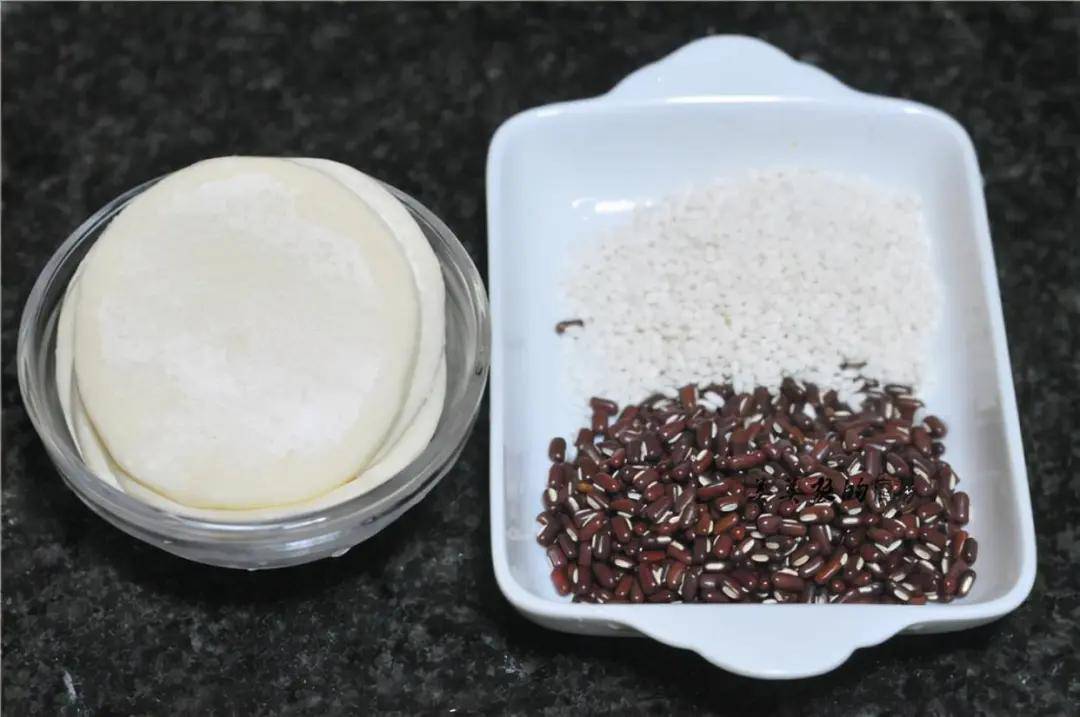 食材都准备好,饺子皮是早上包饺子剩下的,每次包饺子,我都会特意多买点皮,用来做红豆糯米盒子给孩子解馋。