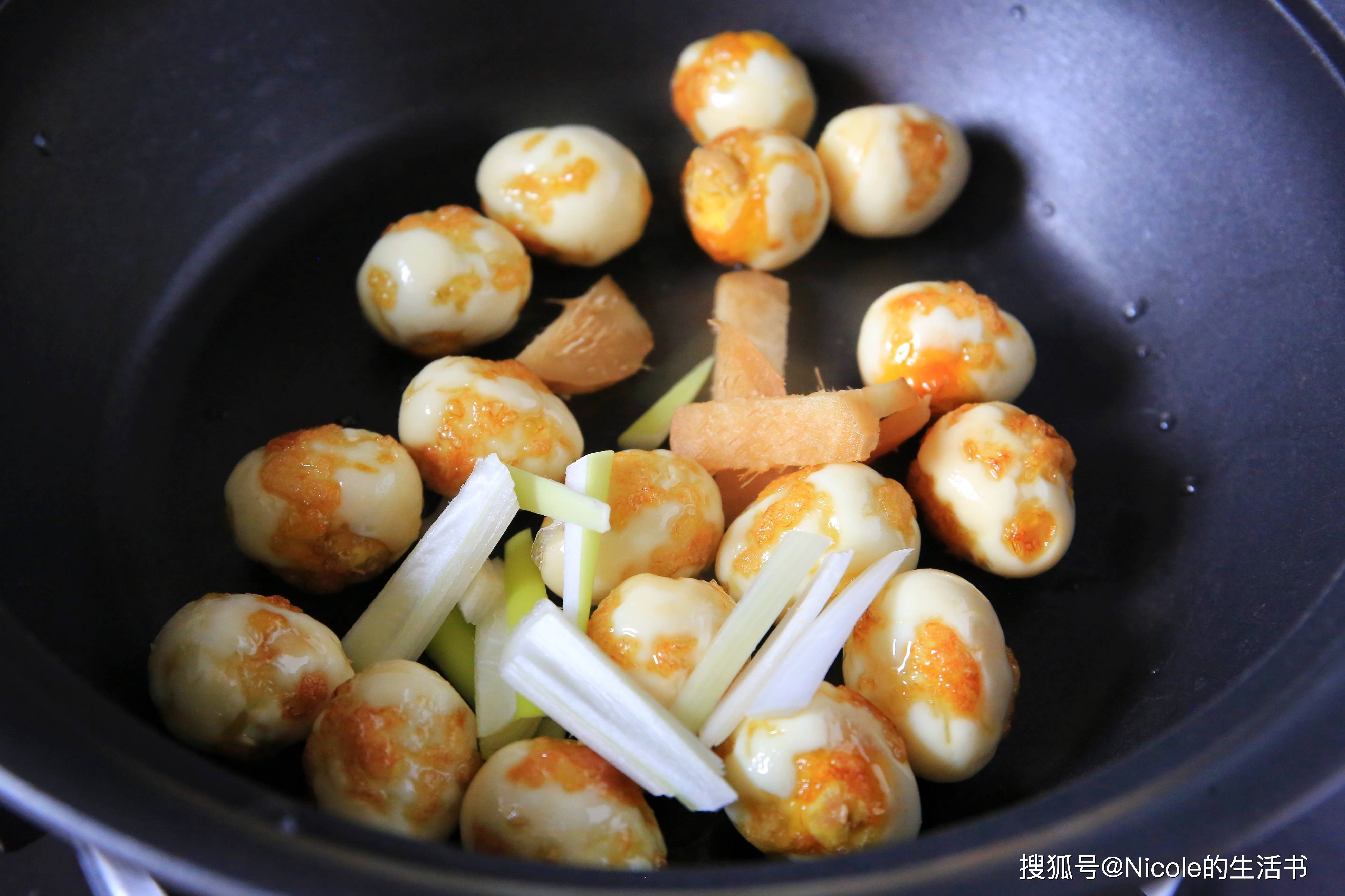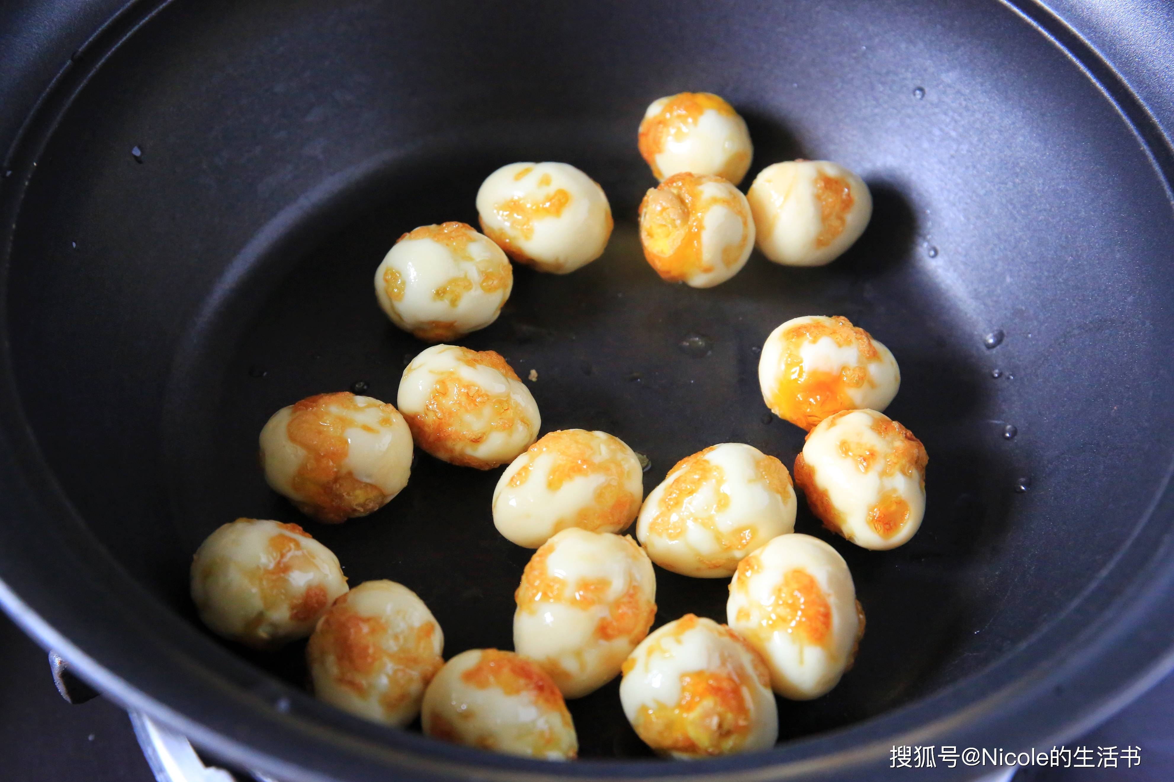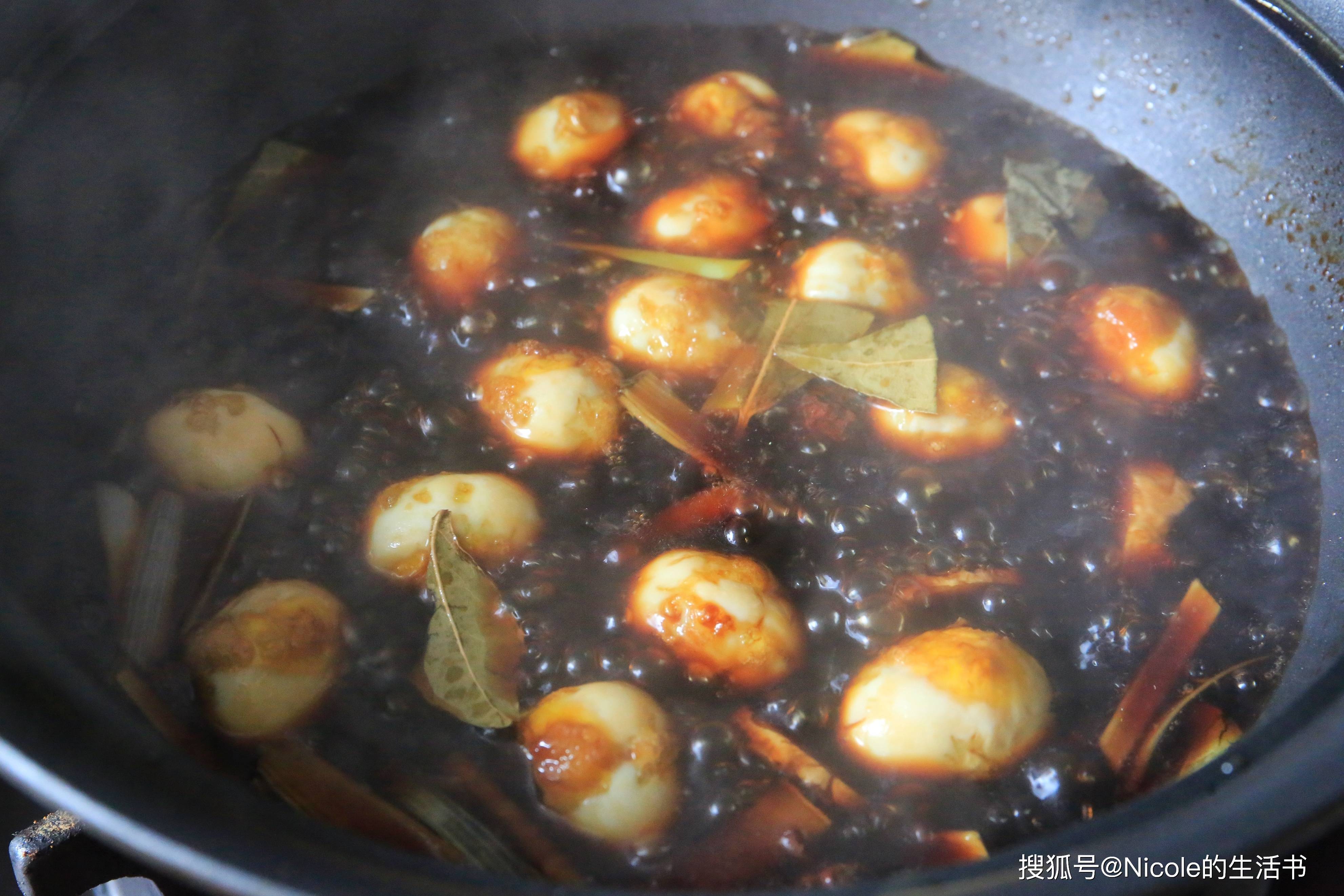 经过小火慢炖二十分钟,鹌鹑蛋吸足了可乐与香料的滋味,咬开后,蛋香与甜香在舌尖散开,细腻的口感,温柔的滋味,暖了胃,也暖了心。水淀粉勾芡,让汤汁变得粘稠,裹着每一颗鹌鹑蛋,色泽更亮,滋味更浓,最后撒上葱丝点缀,清新又美观。