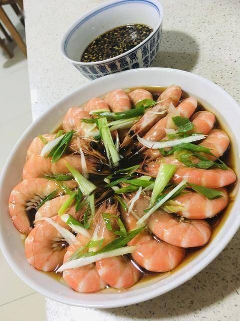 白灼就是“水煮虾”,活虾下锅,虾肉紧实弹牙;要是用死虾、冰鲜虾,虾肉发柴、发松,口感完全不一样。