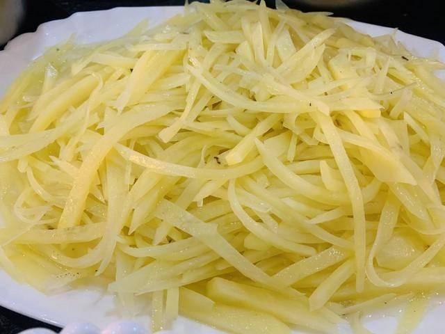 现切现炒,很难用预制菜糊弄你,土豆丝切好放久了会发黑、发软,