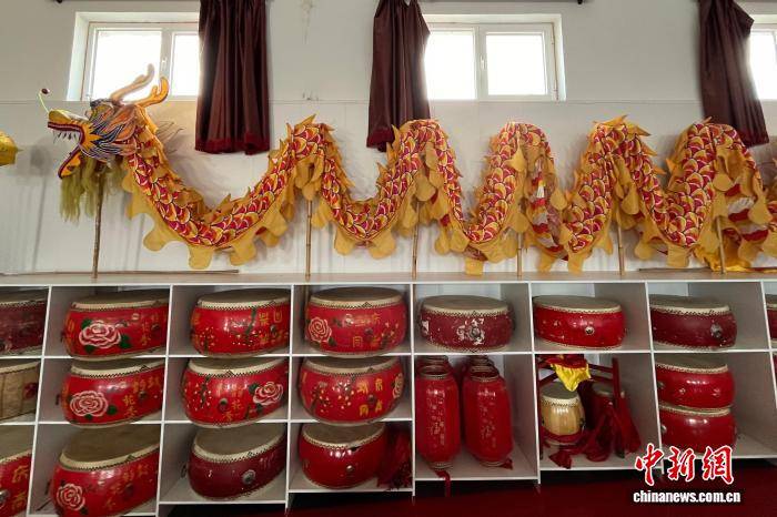2026年2月11日,北京市密云区太师屯镇东田各庄村内的灯俗陈列室,展示舞龙表演道具。中新社记者 陈杭 摄