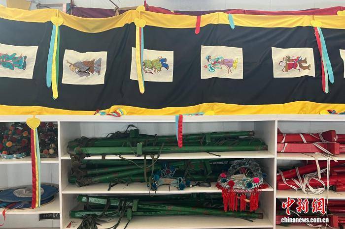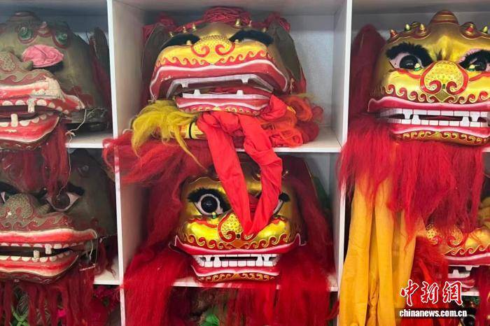 2026年2月11日,北京市密云区太师屯镇东田各庄村内的灯俗陈列室,展示舞狮表演道具。中新社记者 陈杭 摄