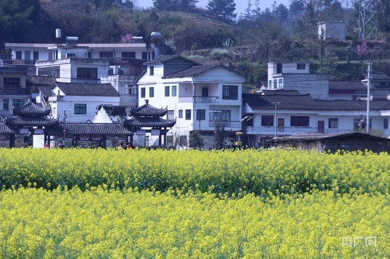 金黄的油菜花与民居构成一幅春日画卷(央广网发 杨俊 摄)