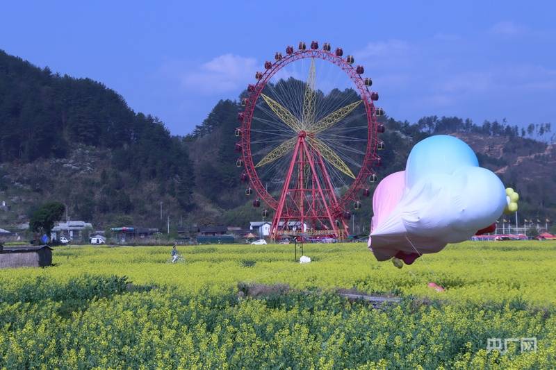油菜花田里的娱乐设施(央广网发 杨俊 摄)