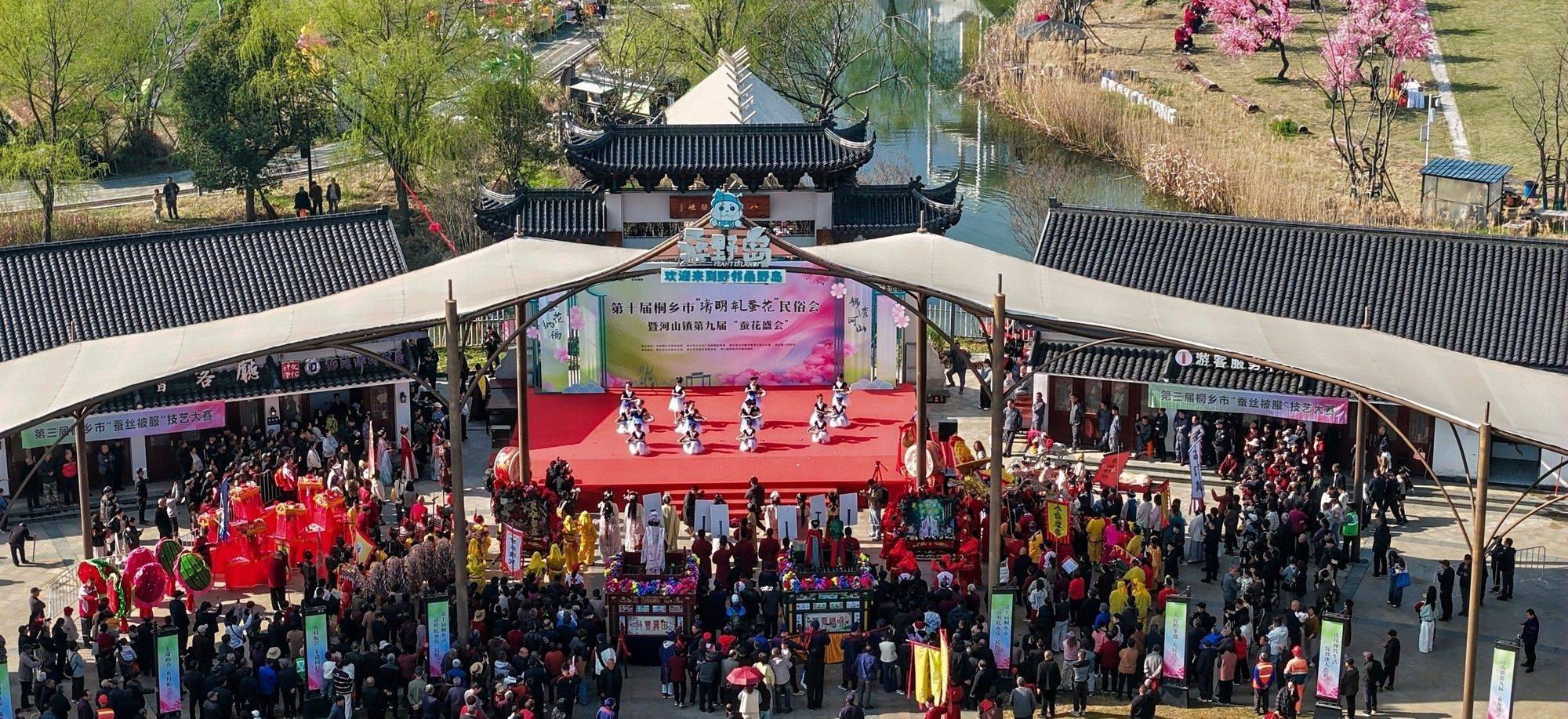 清明时节,浙江桐乡河山镇八泉村,锣鼓声声,人潮涌动。3月28日,第十届桐乡市“清明轧蚕花”民俗会暨河山镇第九届“蚕花盛会”火热启幕。这场以“春”为轴的民俗盛会,将传统蚕桑文化与现代文旅体验深度融合,为八方游客奉上一场可看、可玩、可品、可学的春日文化盛宴。