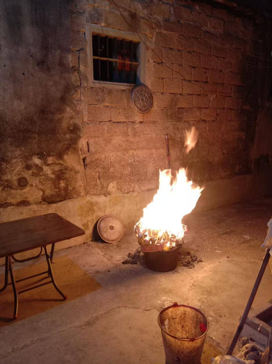 图3 中秋夜烧纸钱(拍摄于2023年9月29日)