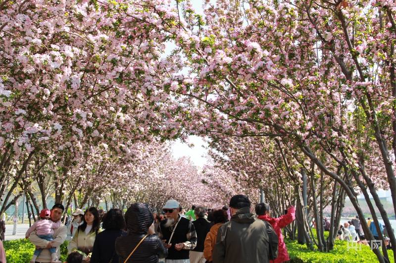 天津文化中心海棠花盛放(央广网发 赵一卉 摄)