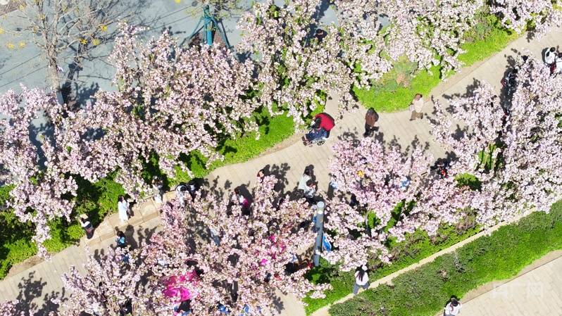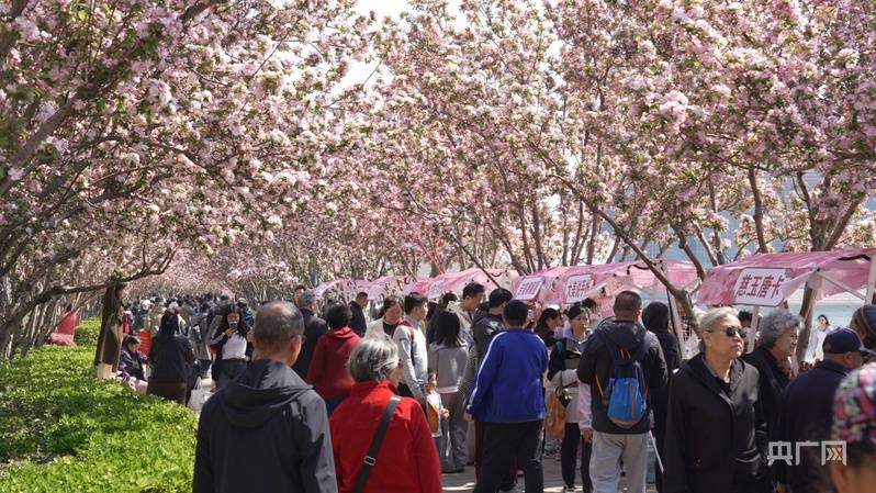 游客在海棠大道游玩(央广网记者 褚夫晴 摄)