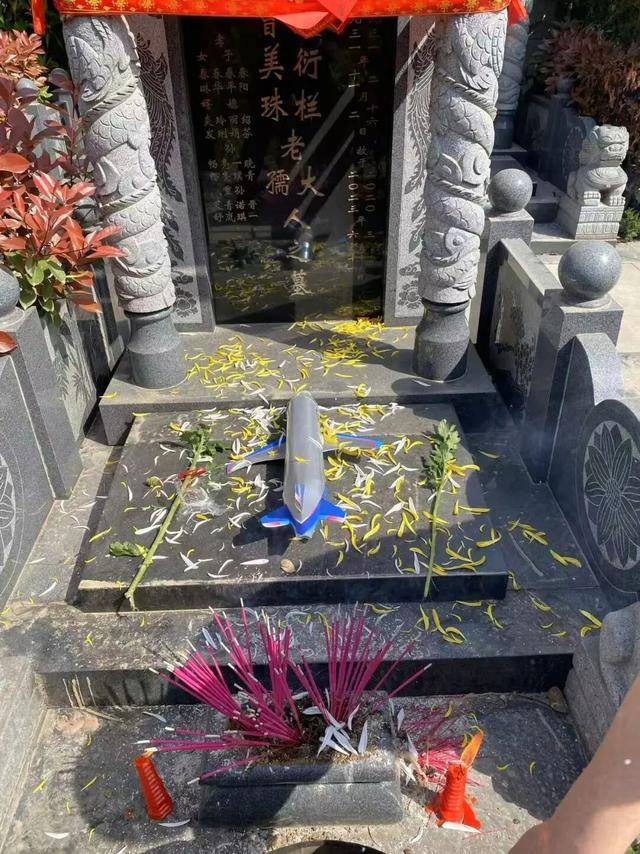清明扫墓时,特地给妈妈贡上一个纸飞机。