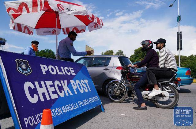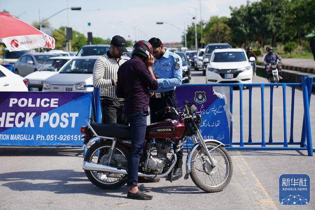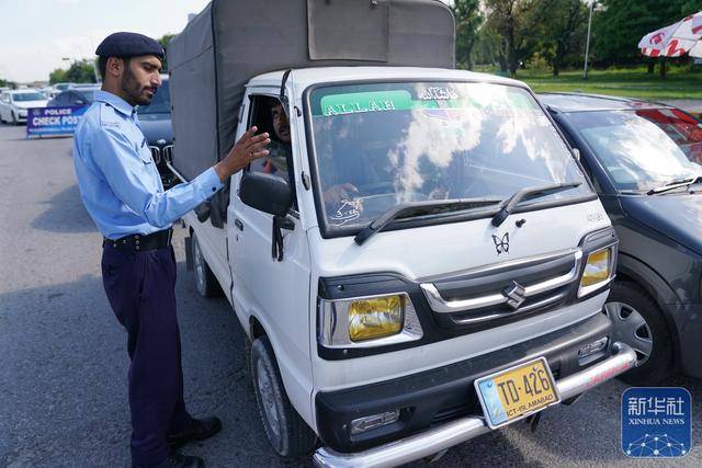 4月9日,在巴基斯坦首都伊斯兰堡,警方在查验点检查过往车辆。
