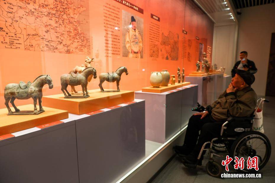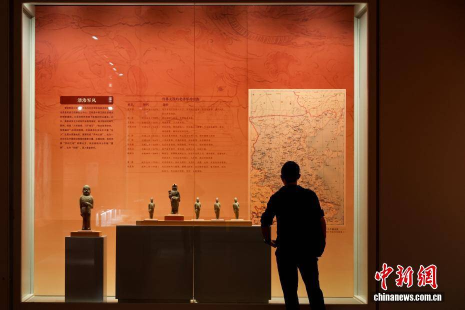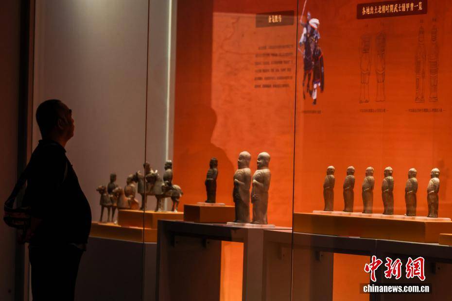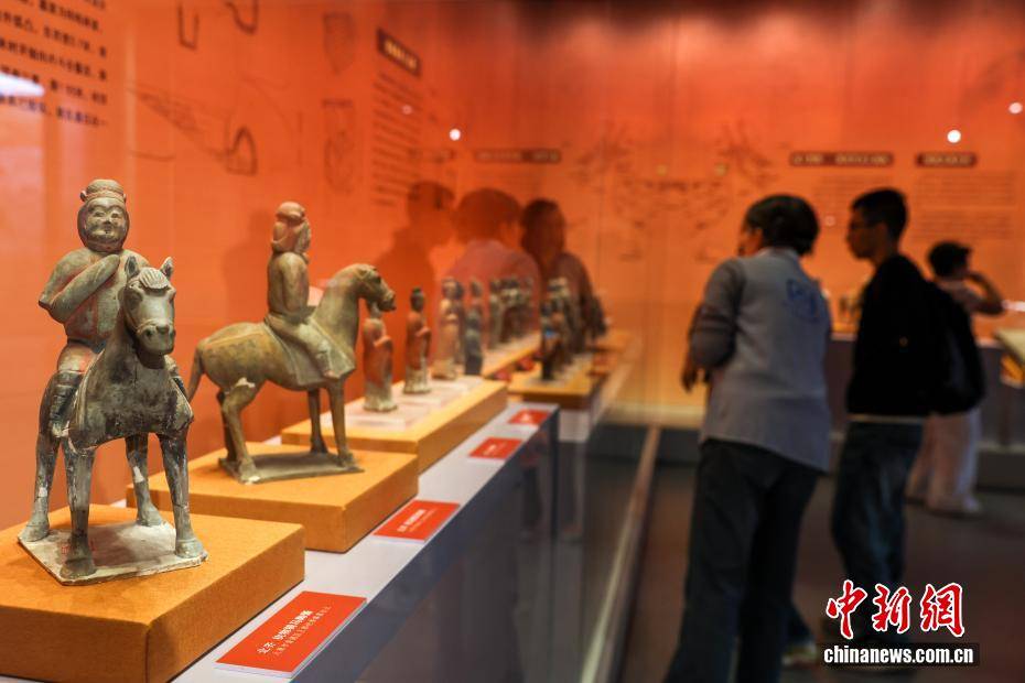 4月10日,湖北武汉,在武汉博物馆举行的“霸府名都——太原市博物馆馆藏北朝隋唐精品文物展”吸引观众参观游览。展览精选该馆珍藏的北朝至隋唐时期文物精品130余件(套),涵盖陶俑、金币、瓷器、碑刻拓片等品类,生动勾勒晋阳从军事要塞到霸府名都的发展脉络,全方位展现古晋阳民族交融、文化多元、开放包容的盛世气象。图为观众参观展出的北齐持物骑马陶俑。中新社记者 张畅 摄