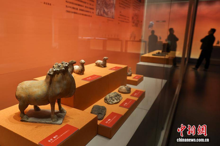 4月10日,湖北武汉,在武汉博物馆举行的“霸府名都——太原市博物馆馆藏北朝隋唐精品文物展”吸引观众参观游览。展览精选该馆珍藏的北朝至隋唐时期文物精品130余件(套),涵盖陶俑、金币、瓷器、碑刻拓片等品类,生动勾勒晋阳从军事要塞到霸府名都的发展脉络,全方位展现古晋阳民族交融、文化多元、开放包容的盛世气象。图为展览展出的北齐陶牛。中新社记者 张畅 摄